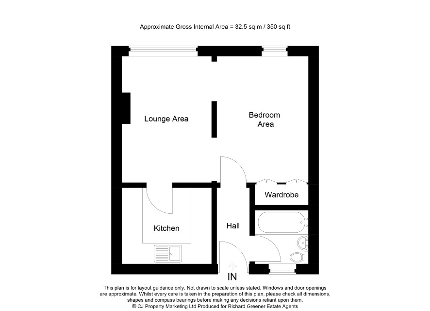 Entrance, bedroom/lounge/dining area, kitchen and bathroom