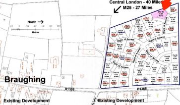 From the M25 Junction 25, head north on the A10 for approx. 16 miles, pass the A120 roundabout and at the next roundabout take the 3rd exit on to the B1368, within a few hundred yards you will find the entrance to the land on your left, opposite no 46 Hay Street. The plot can be found on the north east side of the land,