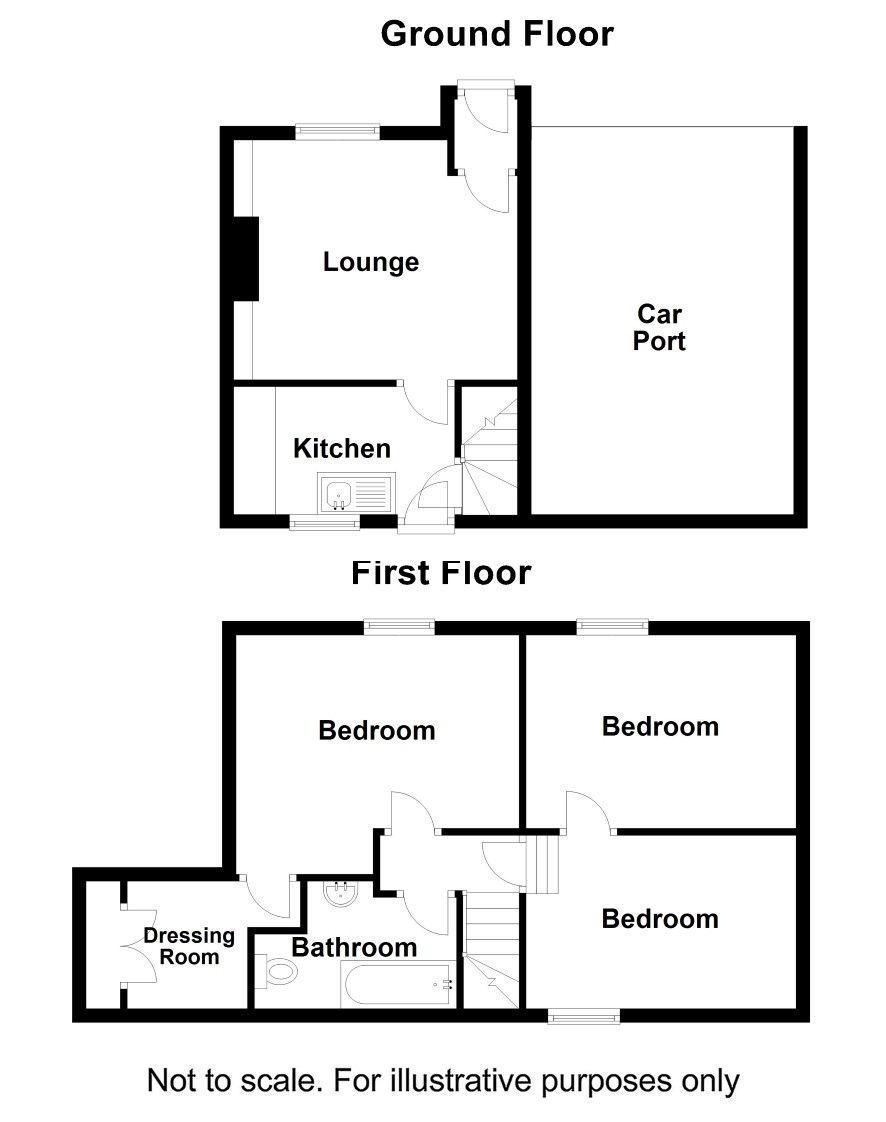 GROUND FLOOR ENTRANCE PORCH LOUNGE/DINING ROOM 13'6 X 11'5 KITCHEN 9'8 X 5'4 LANDING BEDROOM ONE 13'4 X 11 DRESSING ROOM 7'8 X 6'1 BEDROOM TWO 12'10 X 8'6 BEDROOM THREE 12'5 X 8'3 BATHROOM 9'8 X 5'4 OUTSIDE CARPORT TO SIDE EXTENSIVE GARDENS