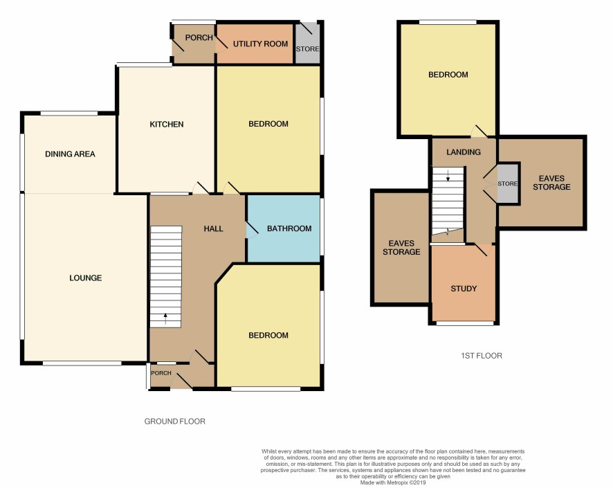 Staircase leads to Landing with storage cupboard leading into Eaves Storage Space, door to Bedroom Three (rear) 3.8m x 3.3m with fitted cupboard, Study Area 2.2m x 2.7m with door leading into Eaves Storage Space. The eaves storage space lends itself for further development with the possibility of an additional bedroom and en-suite subject planning and building regulation approval.