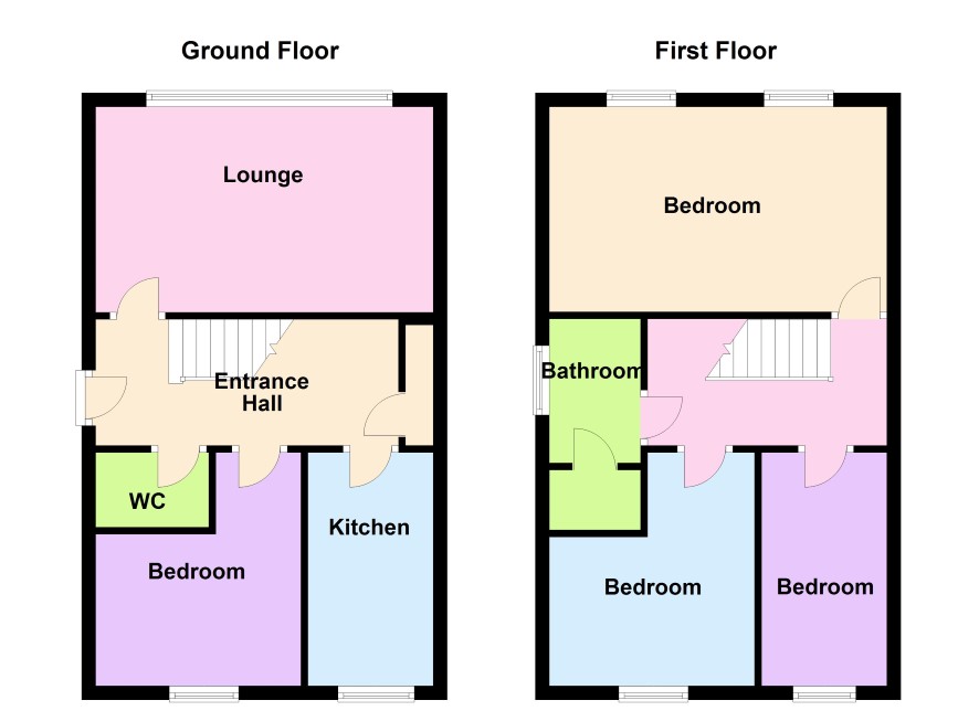 Lounge (4.7m x 3.3m), Downstairs bedroom (2.5m x 2.5m), W.C. (1.1m x 1.4m), Kitchen (3.9m x 2.1m).