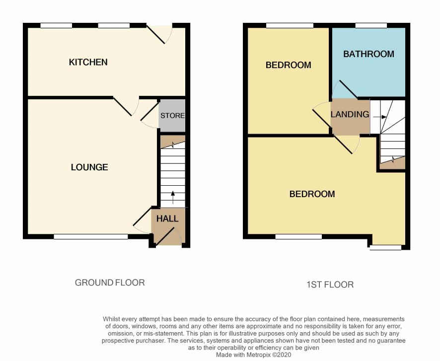 Landing leads to Bedroom 1 (Front) 4.8m x 2.8m with 2 windows to front, Bedroom 2 (Rear) 3.3m x 2.5m with window to rear, Bathroom with white suite, Bath, wash hand basin, W.C. and Shower cubicle.