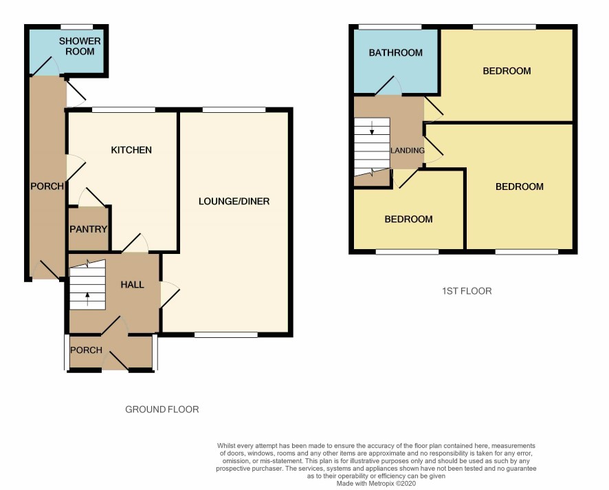 Fully Enclosed Porch with front door leading to Reception Hall, with stairs off and access to Through Lounge/Dining Room 6.3m x 3.6m (max) with feature fireplace and windows to front and rear. Kitchen 4m x 3m (max) with range of units, window to rear and door to Side Lobby with doors to both front and rear and access to Shower Room with shower cubicle, low level W.C and wash hand basin