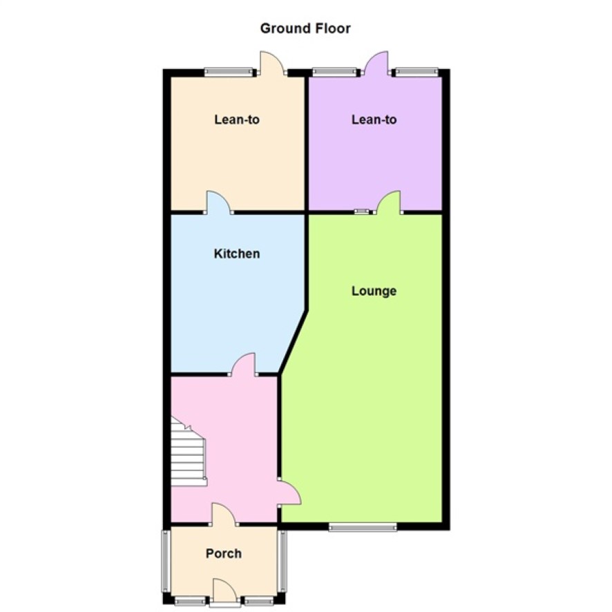 Lounge 3.7m x 6.3m, Lean-to 1 2.9m x 2.2m, Kitchen 3.3m x 2.7m Lean-to 2 2m x 2m