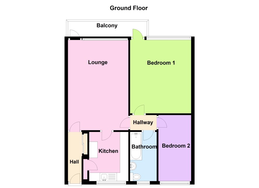 Having door leading into hallway, storage cupboard with sliding doors, Lounge 5.36m x 3.63m Having double glazed windows to rear, uPVC door leading out to balcony, fireplace with wooden and brick surround and door leading off to Kitchen 2.92m x 2.39m Having a range of wall and base units with roll top work surfaces, sink with drainer and mixer tap over, space for oven and washing machine, part tiled walls, enclosed storage cupboard, double glazed window to fore. Hallway Having doors leading off to Bedroom One 4.21m x 3.63m Having double glazed windows to rear, uPVC door leading out to balcony, electric storage heater. Bedroom Two 3.96m x 1.95m Having double glazed window to fore, electric storage heater. Bathroom 2.94m x 1.57m Having bath with shower over, low flush WC, hand wash basin, fully tiled walls, double glazed obscure window to fore and ceiling light point.