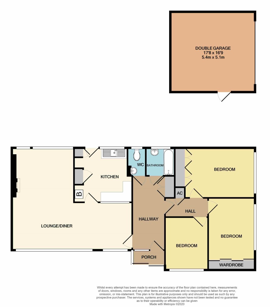 Fully Enclosed Porch, Front Door leads to Entrance Hall with useful store cupboard and door leading to L-Shaped Lounge/Dining Room, Dining Area 3.8m x 3m, Lounge Area 6.3m x 3.7m with windows to both front and rear and feature fireplace. Door leads to Kitchen 3.6m x 3.5m with sink unit, range of base and wall units and an Ideal central heating boiler, there is a window to rear and door to rear garden. From the entrance hall access can be gained to W.C. wit low level suite, Bathroom with panelled bath and wash hand basin. Inner Hallway with airing cupboard provides access to the following bedroom accommodation:- Bedroom One 4.5m x 3m with built in furniture, Bedroom Two 4.4m x 3.16m with fitted wardrobes, Bedroom Three 3.2m x 2.7m.