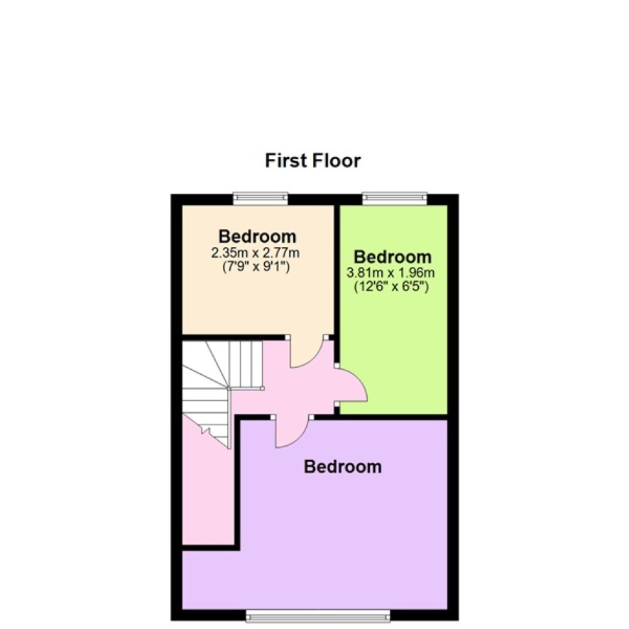 Bedroom One 4.2m x 3.3m, Bedroom Two 3.8m x 2.8m, Bedroom Three 2.7m x 2.2m