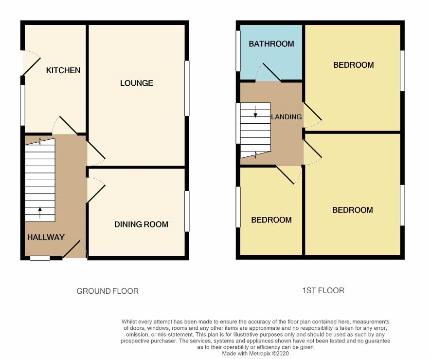 Staircase leads to Landing with window to rear and doors off to Bedroom One (front) 4.1m x 3.3m, Bedroom Two (front) 3.6m x 3.3m, Bedroom Three (rear) 3.1m x 2.1m, Bathroom with bath, wash hand basin, W.C. and window to rear.