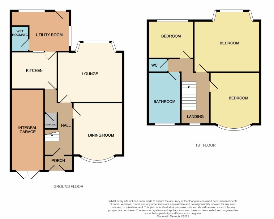Enclosed Porch, Reception Hall with stairs off and useful understair cupboard, Dining Room 3.6m x 3.5m plus double glazed bay to front, Lounge 4.68m x 3.4m plus bay with French doors to rear garden and feature fireplace with living flame gas fire. Well equipped Kitchen 3.6m x 3.5m with sink unit, range of additional matching base and wall units with integrated oven and hob, freestanding gas central heating boiler. Door leads to Lean To Conservatory 3.4m x 3.5m max contained within is a Wet Room with shower and w.c.
