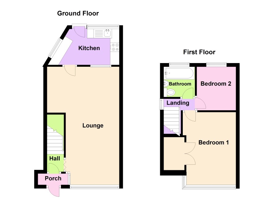 Porch Having uPVC door to enter, double glazed window to fore and side elevation and door leading to Hallway Having stairs off to first floor landing, radiator and door leading off to Lounge 21' 3'' x 10' 1'' (6.48m x 3.08m) Having double glazed window to fore, single glazed window looking into kitchen, fire place with wooden surround and working gas fire, two radiators, under stair storage cupboard, two ceiling light points and door leading off to Kitchen (It has been noted that the kitchen extension is single skin brickwork) 6' 6'' x 8' 10'' (1.97m x 2.68m) Having a range of wall and base units with roll top work surfaces, one and a half sink with drainer and mixer tap over, four ring gas hob with extractor over, oven, part tiled walls, space for fridge/freezer, plumbing for washer and dryer, two double glazed windows to rear and side elevation, ceiling light point and door leading out to garden.