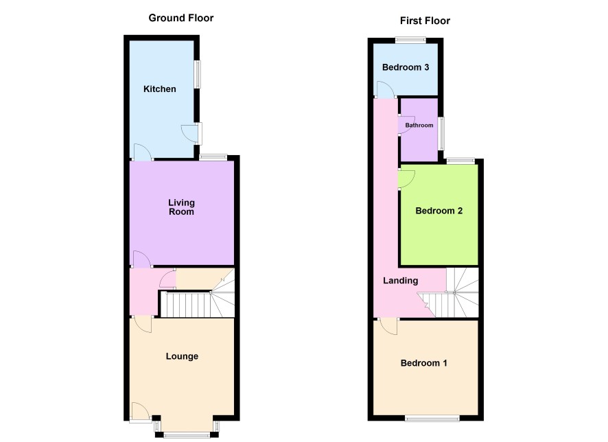 Front door leads to Lounge 3.7m x 3.45m with bay to front, Inner Hallway has stairs to first floor off and door to Sitting Room 3.7m x 3.7m. Fitted Kitchen 4.1m x 2.3m with stainless steel sink unit, range of base and wall units with built in oven and hob. There is a window to side and access to the Garden