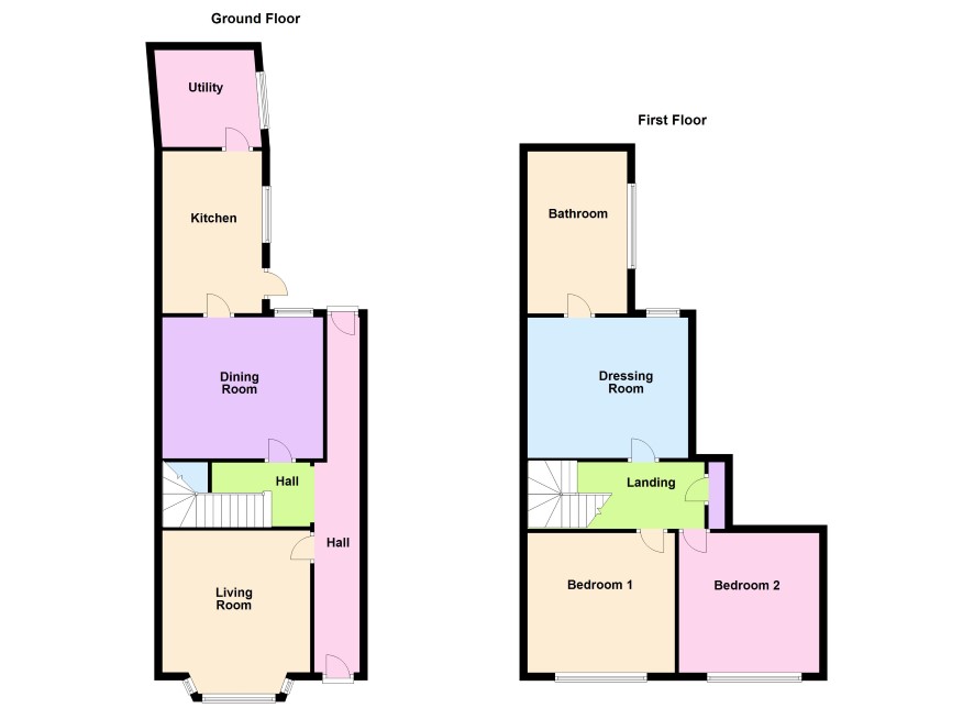 Reception Hall with stairs to first floor off and access to Cellar. There is a door to rear garden and access to Lounge 3.6m x 3.8m with bay to front Dining Room 4.12m x 3.6m with access to Good sized fitted Kitchen 4.17m x 2.58m with range of matching base and wall units with built in oven and hob. Door to outside. Utility Room 2.5m x 2.5.