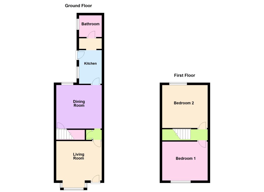 Staircase leads to Landing providing access to Bedroom One (front) 3.8m x 3.3m, Bedroom Two (rear) 3.6m x 3.8m.