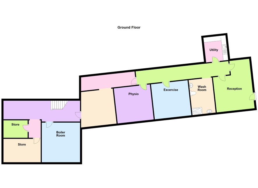Waiting Room and Reception - 24.75 m2 Corridor with doors leading to Utility Lobby leading to shower room and WC. Exercise - 18 m2 Physio – 18.2 m2 Two Storage Rooms Boiler Room with Solar Panel access