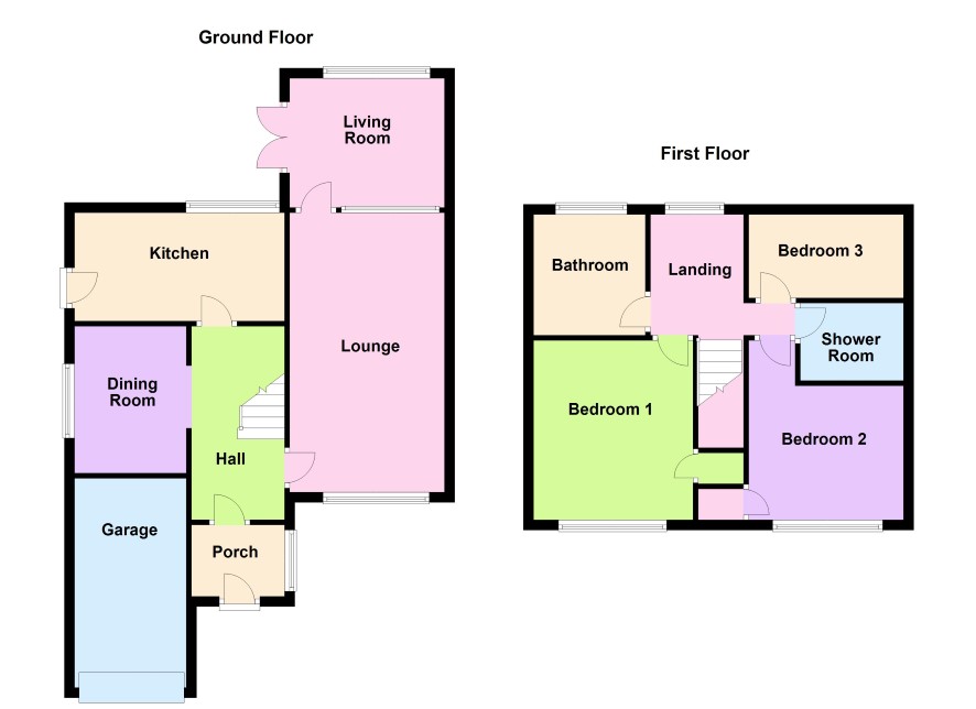 Fully Enclosed Porch, Front Door leading to Reception Hall with stairs to first floor off, door leading to Lounge 5.5m x 3.2m with window to front, door to Living Room 3.2m x 2.5m with double glazed patio doors to rear garden. Dining Room 2.9m x 2.1m with window to side. Kitchen 4.1m x 2.1m with window to rear, door to side and range of units.