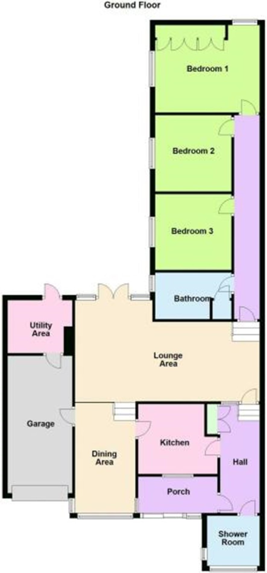 Enclosed Porch Having sliding door to fore, double glazed window to fore and door leading off to Entrance Hallway Having radiator, ceiling light point, closed cloakroom and door leading off to Shower Room Having shower cubicle with shower, low flush WC, wash hand basin, part tiled walls, double glazed window to fore and side elevation and radiator. Lounge 3.17m x 7.43m Having double glazed doors to rear patio area, two radiators, feature fireplace with fitted gas fire, ceiling light point and wall lights. Dining Area 4.64m x 2.40m Having double glazed window to fore, radiator and wall lights and door leading to Kitchen 2.79m x 3.15m Having a range of wall and base units, double sink unit with mixer tap over, part tiled walls, single glazed window to fore, radiator and ceiling light point. Inner Hallway Having ceiling light points, radiator and doors leading off to Bedroom One 3.43m x 4.03m Having a range of fitted wardrobes, double glazed window to rear, double glazed window to side, fitted dressing table, radiator and ceiling light point. Bedroom Two 3.03m x 3.09m Having double glazed window to side elevation, radiator and ceiling light point. Bedroom Three 3.02m x 3.04m Having double glazed window to side, radiator and ceiling light point. Bathroom Having a bath, low flush WC, wash hand basin, radiator, ceiling light points, obscure double glazed window to side and fully tiled walls. Utility Room 2.1m x 2.49m Having sink unit, plumbing for washing machine, wall mounted boiler and door leading to rear garden.