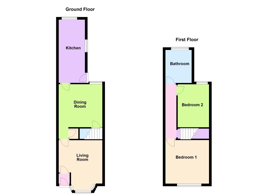Staircase leads to Landing providing access to Bedroom One (front) 3.3m x 3.4m, Bedroom Two (rear) 3.5m x 2.4m, Bathroom with matching white suite.