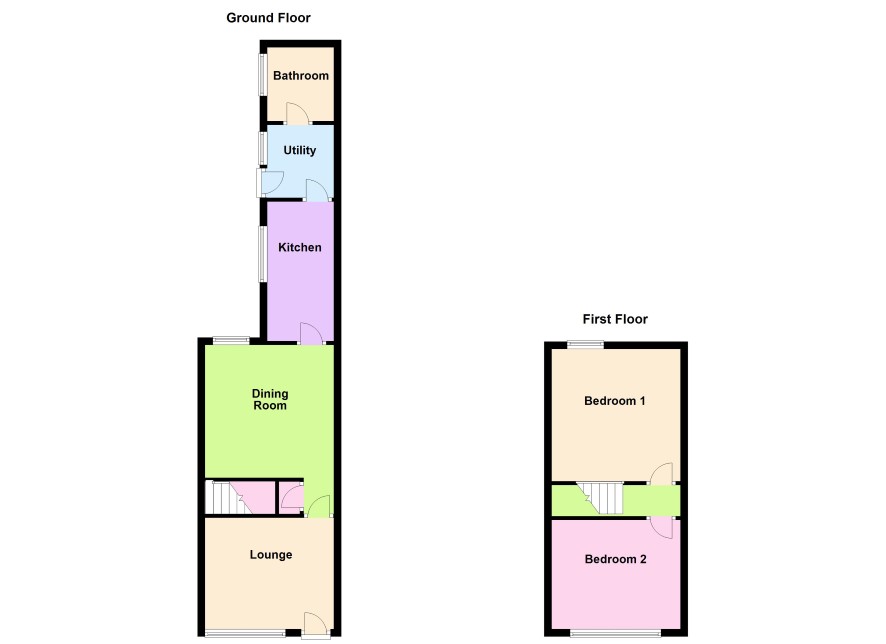Front Door leads to Front Living Room 3.5m x 3m, Inner Lobby with understair cupboard, Rear Living Room 3.6m x 3.5m, Kitchen 3.8m x 1.8m, Utility 1.8m x 2m with Potterton gas fired central heating boiler (not tested) and door to outside. Bathroom.
