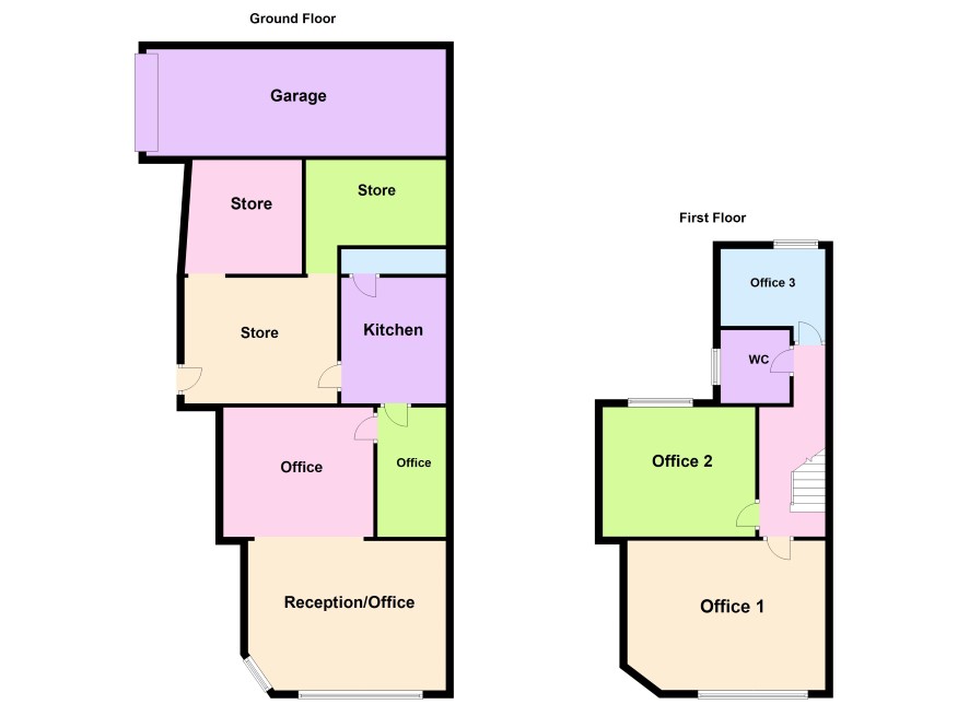 Front Door to Office One/Reception 5.1m x 3.9m max with window to front lading into Office Two 3.4m x 4m Door to Inner Hallway/Office with stairs off and door to Kitchen 2.8m x 3m with useful store cupboard. Door leads to Storage Area 4.6m x 3.2m Additional Storage Area 3.5m x 3.4m Further Storage Area with W.C.
