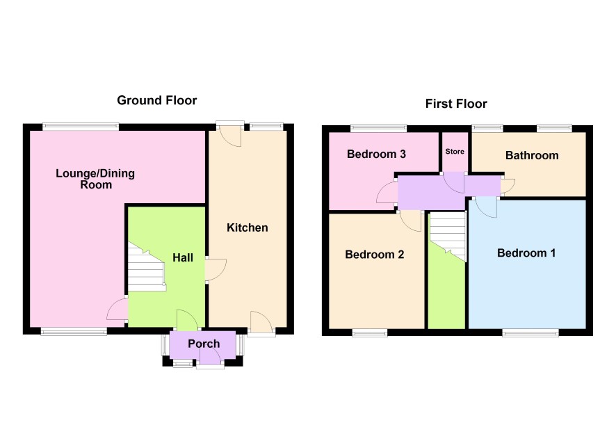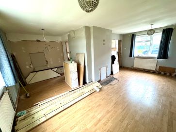 Fully Enclosed Porch, Front Door leads to Reception Hall with stairs to first floor off and door to L-Shaped Lounge/Dining Room, Dining Area 4.95m x 2.2m, Lounge Area 2.9m x 3.4m. Kitchen Area 5.6m x 2.2m which needs fitting with doors to both front and rear.