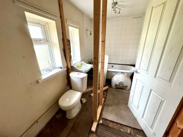Staircase leads to Landing providing access to Bedroom One (front) 3.7m x 3.3m, Bedroom Two (front) 2.9m x 3.2m, Bedroom Three (rear) 3.2m max x 2.3m, Bathroom which has been reconfigured from bathroom and separate toilet, studded walls need replacing, sanitary wear is on site but needs fitting.
