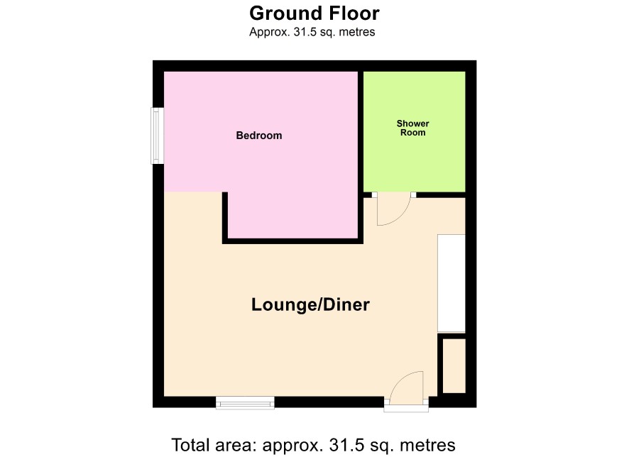 Front door leads to lounge/diner (3.50m x 5.45m), with storage cupboard situated to the right (1.00m x 0.60m) Opening to the left of kitchen leads to bedroom (3.00m x 3.50m) Door to right of kitchen leads to shower room (2.15m x 1.80m)