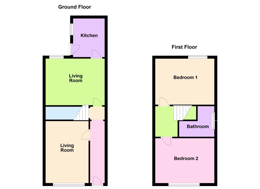 Front Door to Reception Hall with stairs to first floor off and door off to Lounge 4.3m x 3m. Rear Living Room 4.m x 3.2m, Kitchen 2.7m x 2m with range of units.