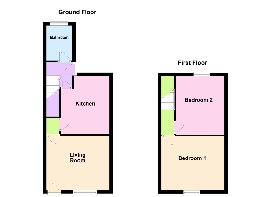 Bedroom 1 (front) 3.8m x 3.3m Bedroom 2 (rear) 2.9m x 3.5m