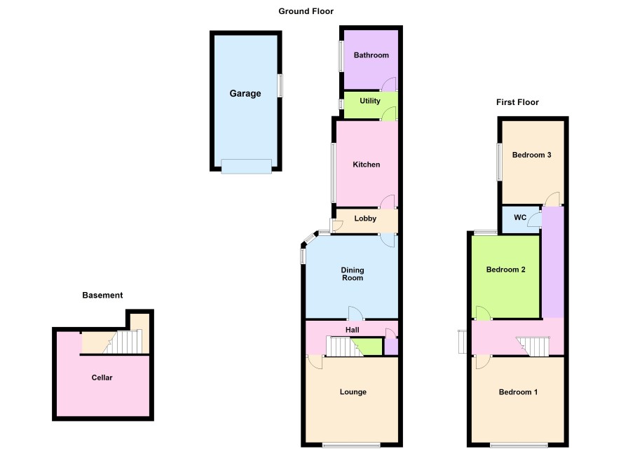 Front Door leads to Reception Hall with stairs off and understair cupboard leading to cellar, Lounge 3.9m x 3.6m, Dining Room 3.9m x 3.5m, Lobby with door to outside, Kitchen 3.6m x 2.7m, Utility 2.3m x 1.1m, Bathroom 2.5m x 2.3m