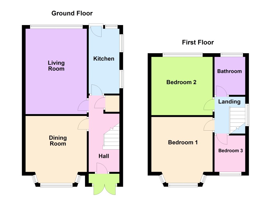 Enclosed Porch, Front Door leading to Reception Hall with stairs to first floor off and door to Dining Room 3.4m x 3.1m with bay window to front, extended Lounge 4.7m x 3.4m with window overlooking rear garden, Kitchen 3.5m x 1.66m with door to outside.