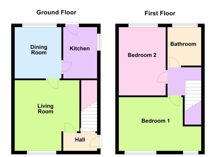 Bedroom One (front) 4.7m max x 3m, Bedroom Two (rear) 4m x 2.6m, Bathroom
