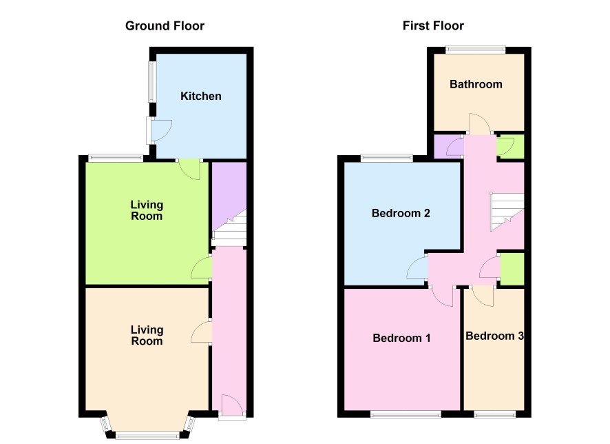Bedroom 1 (front) 3.5m x 3m Bedroom 2 (rear) 3.5 m x 3.5m max Bedroom 3 (front) 3.5m x 2m Bathroom