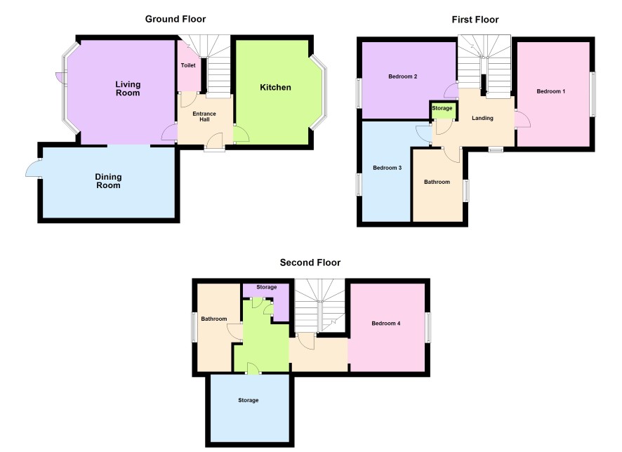 Stairs from First-Floor Landing leads to Second Floor Landing, which gives access to Bedroom 4 (3.28m x 2.81m), Bathroom (3.06m x 1.70m), Storage (2.56m x 2.95m) and Storage Cupboard (1.37m x 1.75m)