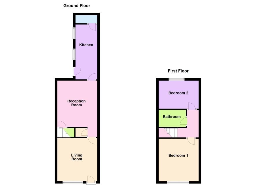 Staircase leads to Landing providing access to Bedroom One (front) 3.6m x 3.4m, Bedroom Two (rear) 2.3m x 3.4m, Bathroom with white suite.