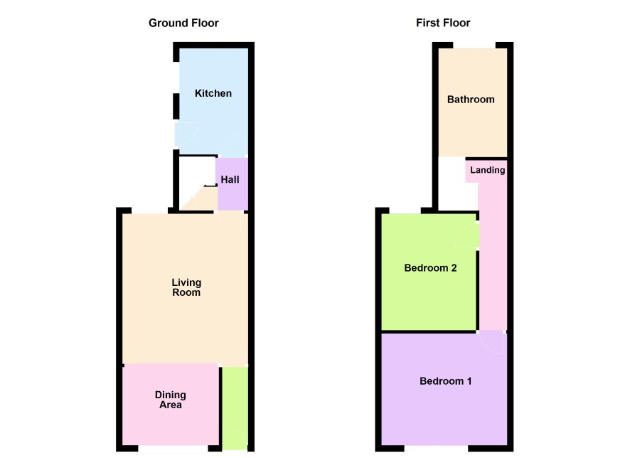 Staircase leads to Landing. Bedroom One (front) 4m x 3.4m, Bedroom Two (rear) 3.7m x 3m, Bathroom with matching white suite and shower over bath.