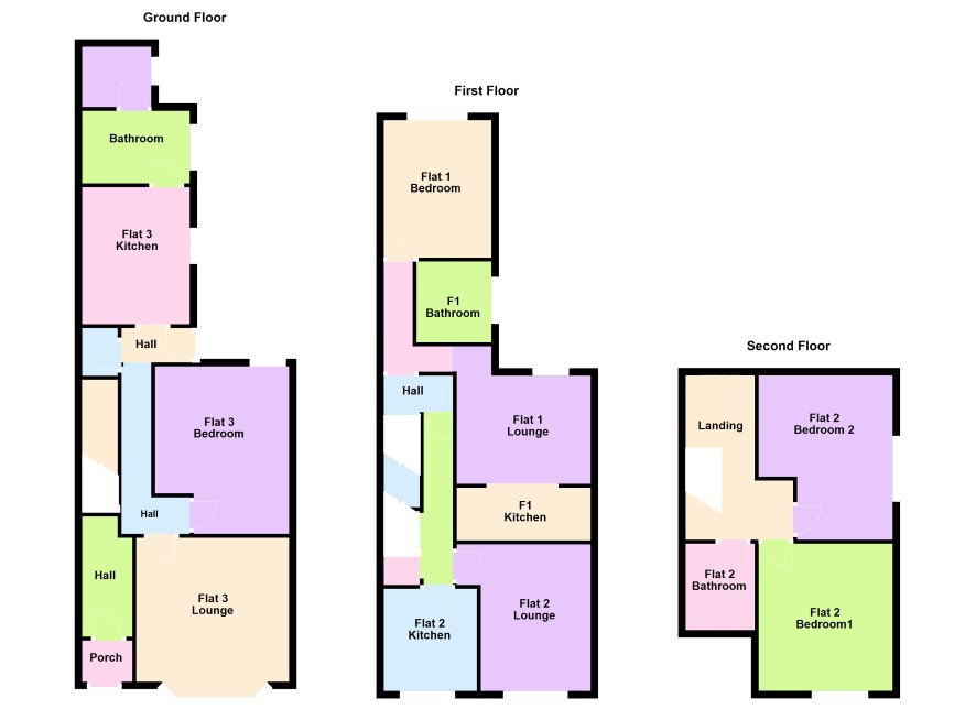 Hallway, Living Room 4m x 3m, Kitchen 2.4m x 2.4m. Stairs to Landing, Bedroom One 4m x 4m, Bedroom Two 3.4m x 3m, Bathroom.