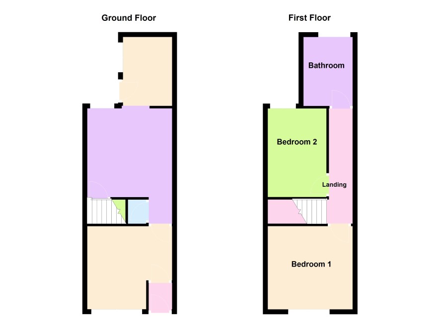 Front Door to Hall with access to Front Living Room 3.58m x 3.48m, Inner Hallway with store cupboard, Living Room 3.7m x 3.6m leading into Kitchen 2.7m x 2m with sink unit, range of base and wall units and door to outside.