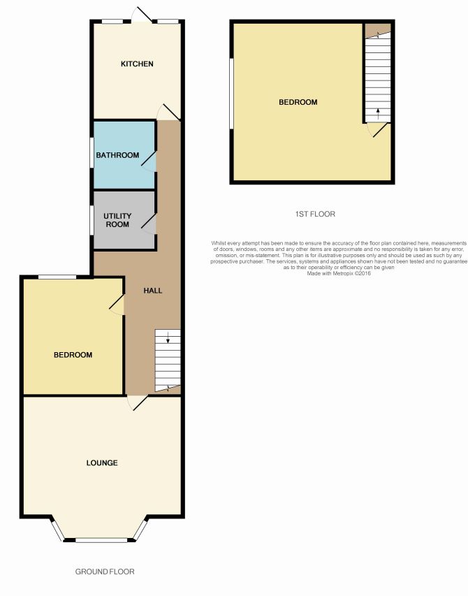 Entrance hallway allows shared access to both flats. Lounge with bay window to front (5m x 4.2m), Bedroom (4.1m x 3.6m), Bathroom (2.1m x 1.8m), Kitchen (3.6m x 3.3m) and cellar accessed from the hallway.