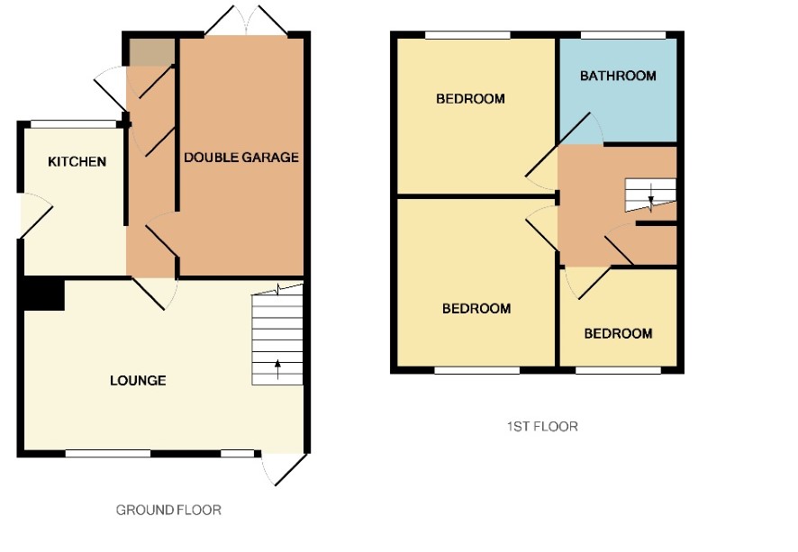ENTRANCE PORCH Entrance doors leads into the entrance porch area. HALLWAY With access internal door to the garage. KITCHEN 2.7m x 2m A range of wall & base units with complementary worktops, space for appliances, sink & drainer, window and side door. LOUNGE 5.3m x 3.4m With window and door to the garden. Stairs rise to first floor