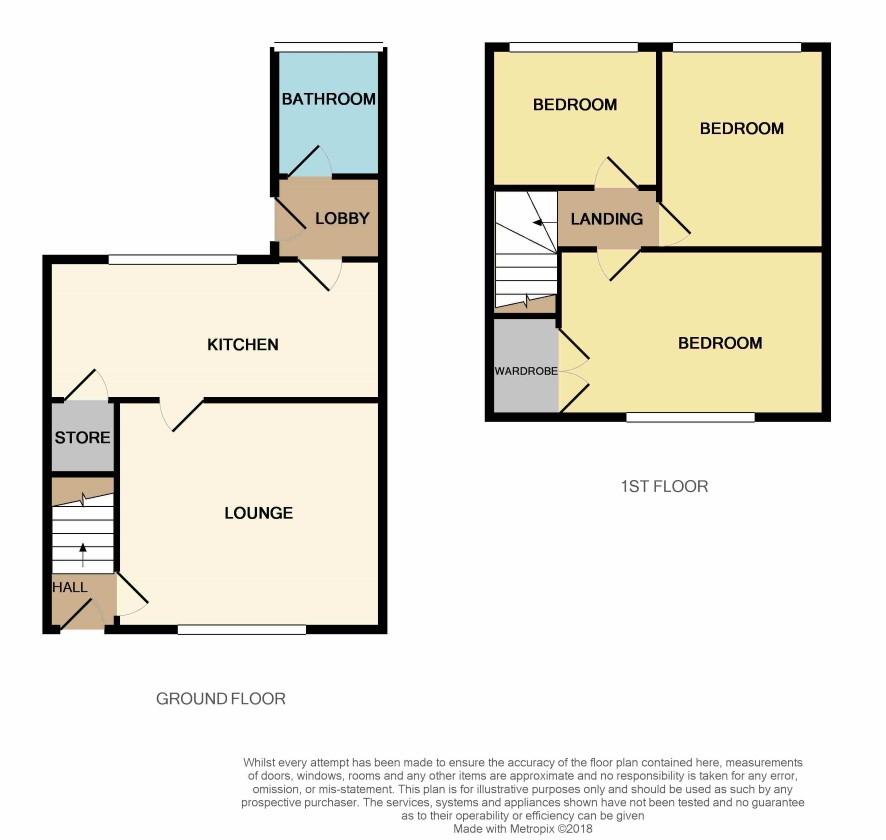 Reception Hall, Lounge (4.3m x 3.6m), Fitted Kitchen (5.5m x 2.2m) with appliances, Rear Lobby, Bathroom with white suite
