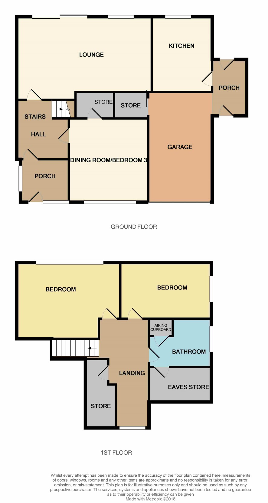 Staircase leads to large Landing with useful eaves storage cupboard and doors off to Bedroom One (rear) 4.64m x 3.54m with window to rear, Bedroom Two (rear) 4.4m x 2.56m with window to side, Bathroom 2.6m x 2.1m with door to useful eaves storage space. .