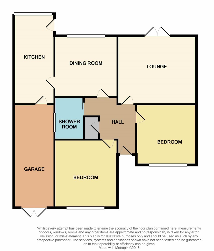 Double glazed front door leads to spacious Entrance Hall with airing cupboard housing Vailant gas fired central heating boiler. Lounge 4.2m x 3.6m with double French doors to rear garden and feature fireplace, Dining Room 3.5m x 3.36m with double glazed window to rear, Kitchen 5m x 2.2m with range of base and wall units, double glazed window to rear and door to outside and access to Garage. Bedroom One (front) 3.7m x 3.35m with double glazed window to front. Bedroom Two (front) 3.35m x 2.88m with double glazed window to front.Shower Room with wide shower cubicle, low level w.c. wash hand basin.