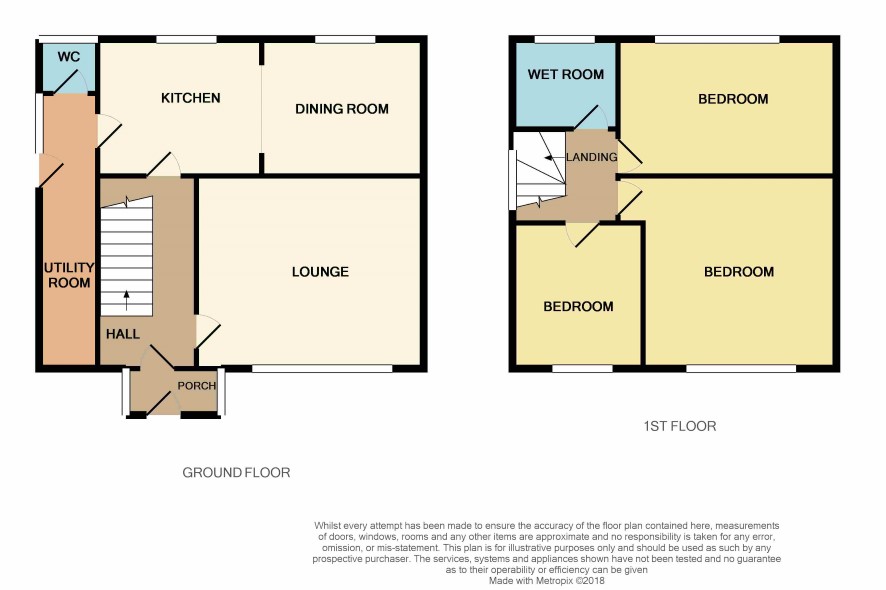 Staircase leads to Landing providing access to Bedroom One (front) 3.7m x 3.7m, Bedroom Two (rear) 4m x 2.6m, Bedroom Three (front) 2.6m x 2.8m, Wet Room with shower, w.c. and wash hand basin.