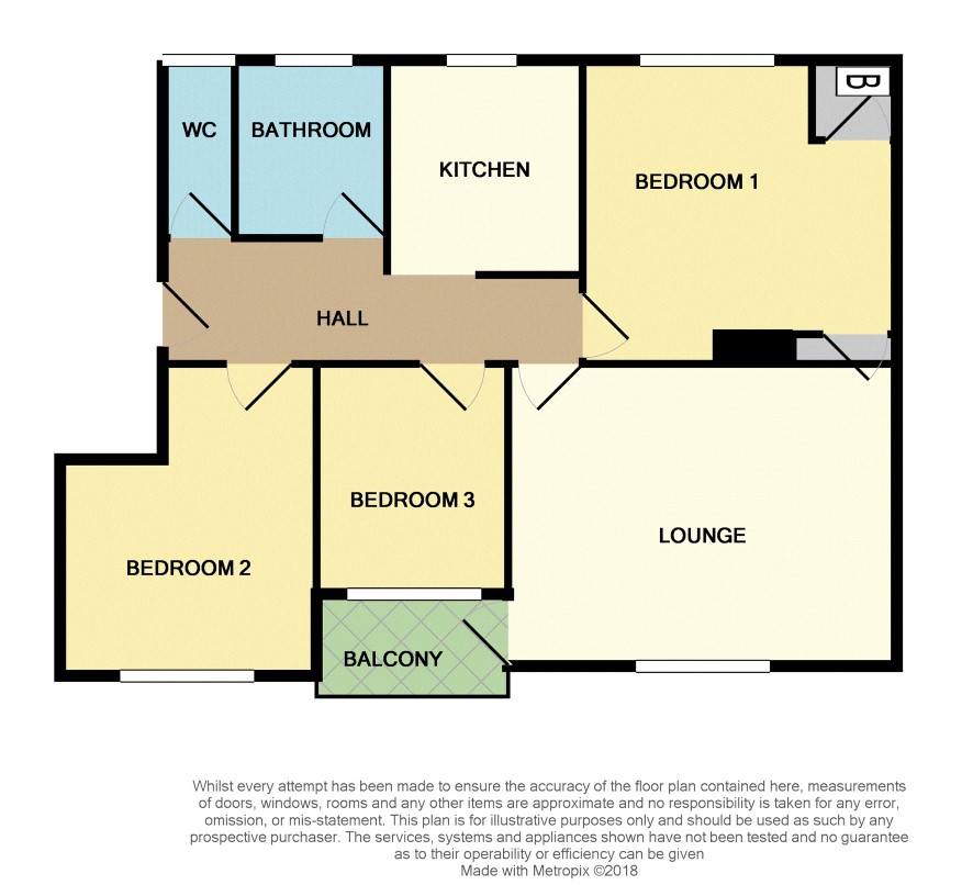 Communal entrance and gardens, lounge with balcony, three bedrooms, kitchen and bathroom with separate WC.