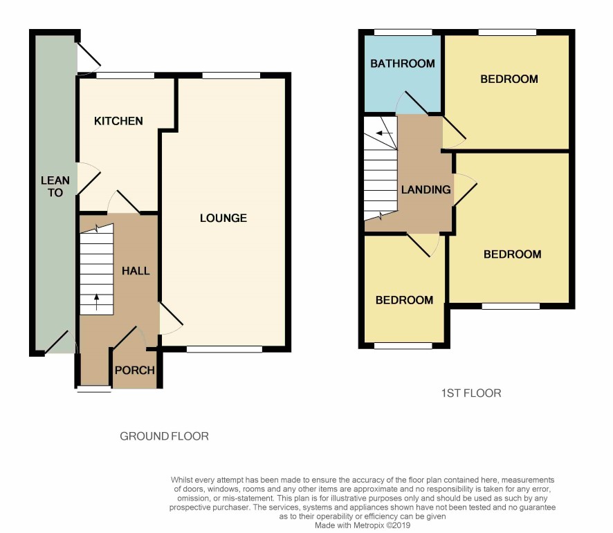 Staircase leads to Landing providing access to Bedroom One (front) 3.6m x 2.9m, Bedroom Two (rear) 3m x 2.76m, Bedroom Three (front) 2.6m x 1.9m. Bathroom with matching suite.
