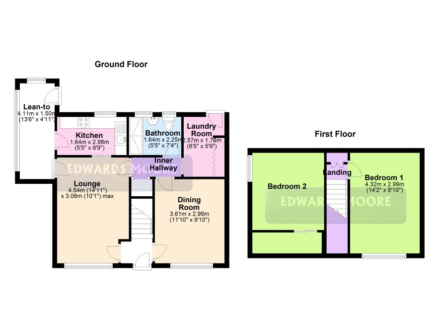 Hallway Having stairs off to first-floor landing, ceiling light point and doors leading off to. Lounge14' 4'' x 10' 1'' (4.37m x 3.07m) Having a double glazed bow window to fore, ceiling light point, two wall light points, radiator and sliding door to. Kitchen Having a range of wall and base cupboards, roll top work surfaces, sink was single drainer with mixer tap over, double glazed window to rear, oven, gas hob and door leading to Lean-too. Dining Room11' 11'' x 9' 4'' (3.63m x 2.84m) Having a double glazed bow window to fore, radiator and ceiling light point. Inner Hallway Having a pantry, ceiling light point and doors leading off to. Ground Floor Shower Room Having a double shower cubicle, low flush w.c, wash hand basin, double glazed window to rear and part tiled walls. Laundry Room8' 7'' x 5' 8'' (2.61m x 1.73m) Having plumbing for washing machine and door to outside. Lean-Too13' 6'' x 4