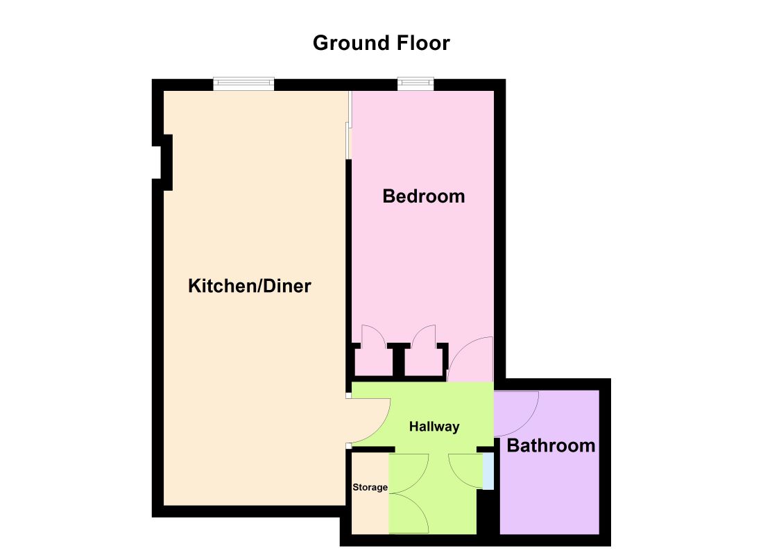 Hallway (2.59m x 2.50m), Kitchen/Diner (7.07m x 3.10m), Bedroom (4.88m x 2.42m) and Bathroom (2.29m x 1.85m)