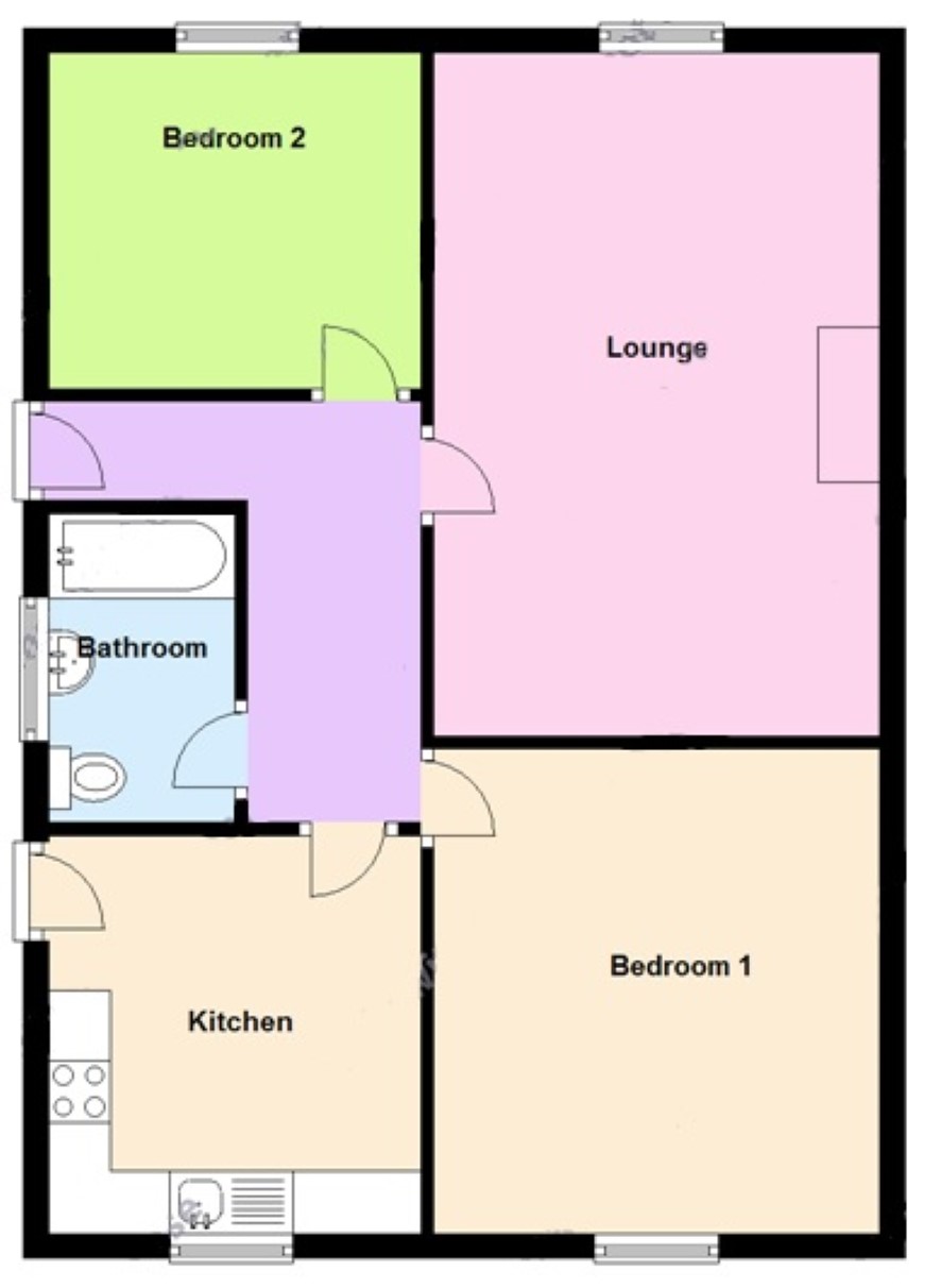 A uPVC entrance door leads to the lounge, 5.5m x 3.6m, having front facing double glazed window, radiator and feature gas fire. Kitchen, 3m x 3m, having a range of base units, including insert sink, gas hob, rear facing double glazed window and uPVC side entrance door. Bedroom One, 3.9m x 3.6m, having rear facing double glazed window and radiator. Bedroom Two, 3m x 2.7m, having front facing double glazed window and radiator. Bathroom, 2.6m x 1.6m, having wet room style suite comprising electric shower, pedestal wash hand basin and WC, together with a side facing double glazed window and radiator.