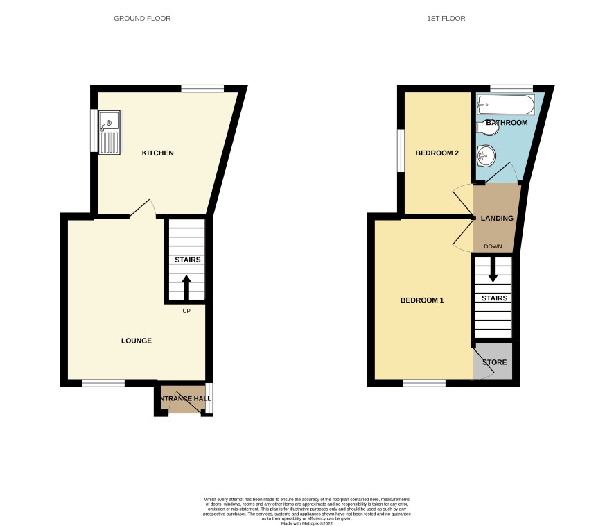 A flight of stairs leads to the first floor. Bedroom One, 2.5m x 3.9m. Bedroom Two, 2.9m x 2.4m (maximum overall dimensions). Bathroom, 0.9m widening to 1.7m x 2.2m, comprising bath, WC and wash hand basin.