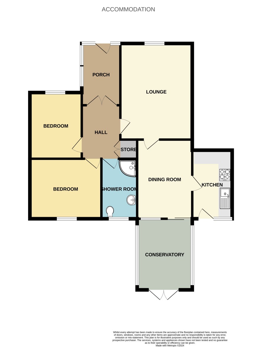An entrance porch leads through to the entrance hall, having a built-in storage cupboard. Lounge, 4.57m x 3.63m. Dining Room, 3.99m x 2.77m, having access to the kitchen and conservatory. Kitchen, 3.45m x 1.88m, comprising of a range of modern wall, drawer, and base units with complementary work surfaces over, together with access to the rear garden. Conservatory, 3.56m x 2.62m, having access onto the rear garden. Bedroom One, 3.63m x 3.02m. Bedroom Two, 3.33m x 2.69m. Shower Room, being fully tiled and fitted with a modern white 3-piece suite comprising of a shower cubicle with mixer shower, pedestal wash hand basin, and low flush WC.